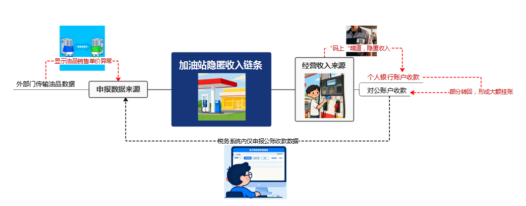 通過數(shù)據(jù)分析,該局檢查人員理清了該加油站“個人銀行賬號收款——部分收款轉(zhuǎn)入對公賬戶——通過對公賬戶購油”的資金運轉(zhuǎn)鏈條,并結(jié)合該加油站經(jīng)營模式的特點,對油品的出入庫情況與資金流向進(jìn)行匹配分析,最終還原了該加油站的實際經(jīng)營狀況,查清了其隱匿銷售收入的違法事實。經(jīng)查實,該加油站共隱匿銷售收入908.49萬元,造成少繳增值稅、企業(yè)所得稅等各項稅費款合計126.93萬元。