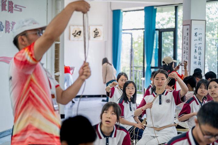 2025年5月12日,云南省昭通市威信縣第一中學(xué)學(xué)生在大屏上紅色研學(xué)實踐基地體驗編織草鞋。200余名學(xué)生在紅色研學(xué)實踐基地親手編織草鞋、制作蠟染,并參觀了扎西會議舊址、紅軍長征過云南情景體驗館,在實踐互動中重溫紅色革命歷史。威信縣立足紅色文化資源優(yōu)勢,先后建成扎西會議紀念館、紅軍長征標語館等紅色文化展館,以舊址遺跡為“教室”,以文物史料為“教材”,設(shè)計開發(fā)多門精品研學(xué)課程和線路,在深入開展紅色研學(xué)系列活動中傳承紅色基因。