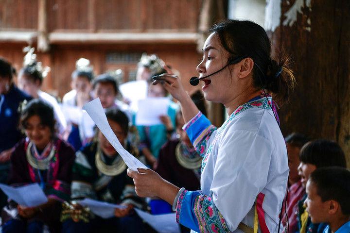 隨著國產(chǎn)動畫電影《哪吒之魔童鬧?!凡粩嗨⑿轮袊笆菲狈考o錄,參與電影配樂的貴州省榕江縣三寶侗寨的楊想妮和“舞樂蟬歌”團隊為更多人所熟知。樂團成員懷揣“用音樂傳遞侗族文化,讓世界聽見侗族大歌”的共同夢想,將侗族大歌推向更廣闊的舞臺。這是2025年4月22日,楊想妮在貴州省黎平縣肇興鎮(zhèn)廈格侗寨教前來研學(xué)的孩子們唱侗歌。
