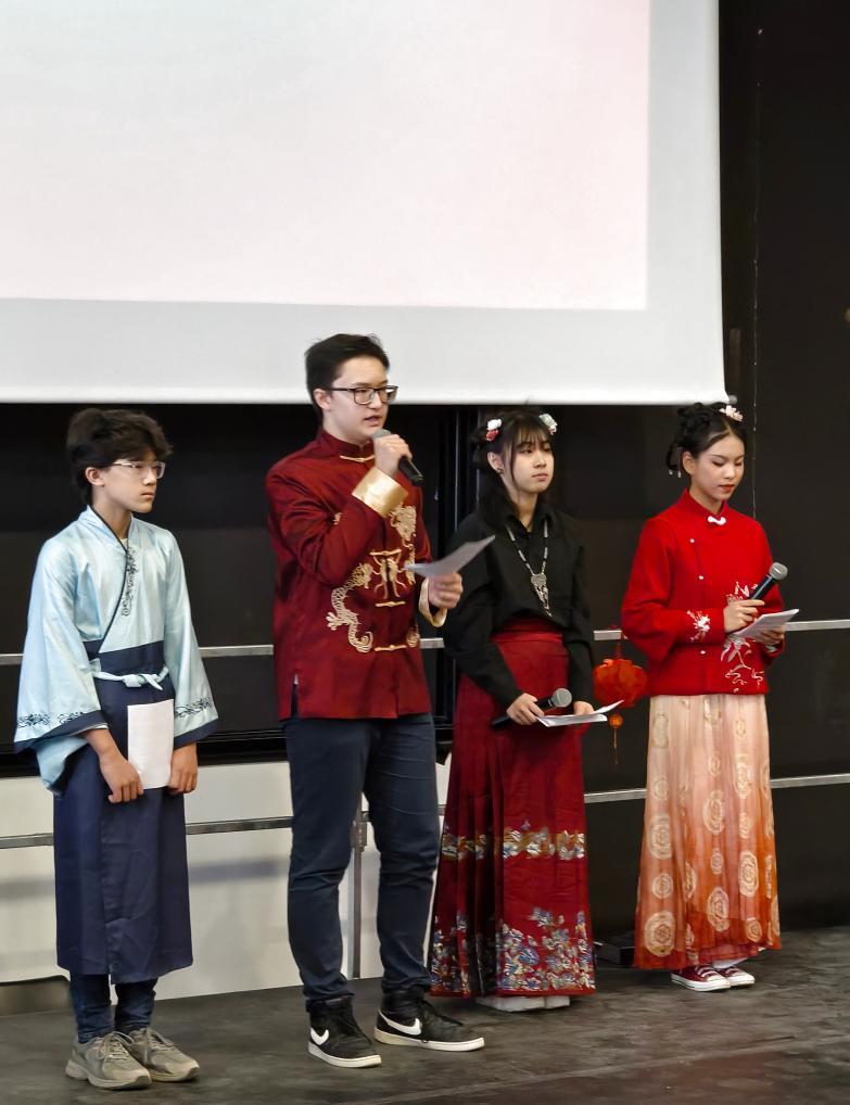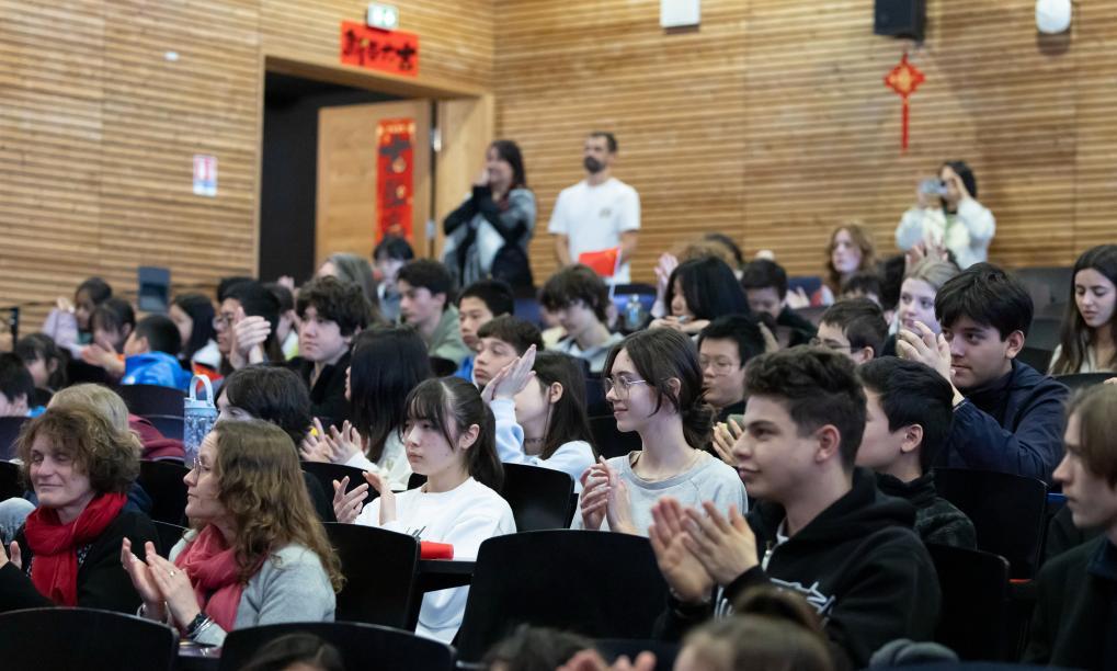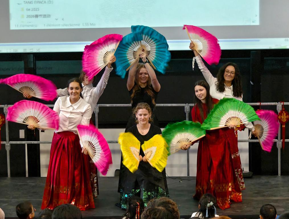 2月5日,在法國馬諾斯克,普羅旺斯-阿爾卑斯-藍色海岸大區(qū)國際學(xué)校學(xué)生在春節(jié)活動上表演。新華社發(fā)(普羅旺斯-阿爾卑斯-藍色海岸大區(qū)國際學(xué)校供圖)