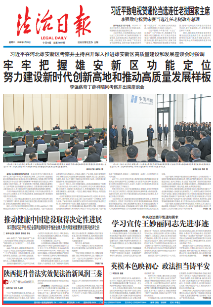 “八五”普法規(guī)劃實(shí)施以來,陜西深入學(xué)習(xí)貫徹習(xí)近平法治思想,大力開展法治宣傳教育,持續(xù)推進(jìn)法治文化建設(shè),為奮力譜寫新時(shí)代陜西高質(zhì)量發(fā)展新篇章營造良好法治環(huán)境。