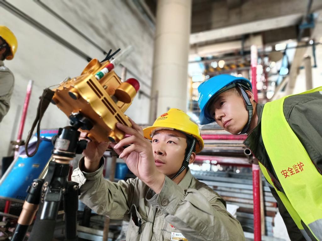 2024年4月23日,中國核電工程有限公司的企業(yè)導師和項目負責人現場指導朱澳(左一)。(李海萁 攝)