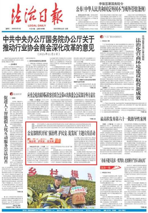今年4月至明年1月,全國公安機關(guān)將開展“強治理、護民安、促發(fā)展”主題宣傳活動。該活動旨在緊密結(jié)合樹立和踐行正確政績觀學(xué)習教育,把宣傳成果切實轉(zhuǎn)化為維護國家安全和社會穩(wěn)定的實際行動。本報開設(shè)“強治理、護民安、促發(fā)展”專欄,展現(xiàn)公安機關(guān)在提升社會治理效能、守護人民安寧、服務(wù)高質(zhì)量發(fā)展方面的實踐與成效。敬請關(guān)注。