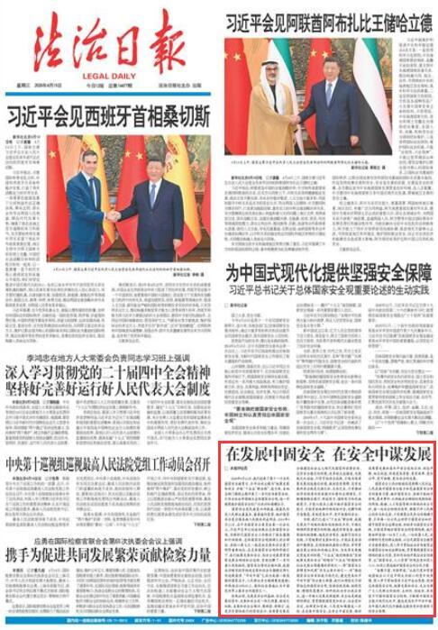 “備豫不虞,為國常道。”讓我們更加緊密地團結(jié)在以習(xí)近平同志為核心的黨中央周圍,深入學(xué)習(xí)貫徹落實習(xí)近平法治思想,堅持總體國家安全觀,統(tǒng)籌發(fā)展和安全,充分發(fā)揮廣大人民群眾積極性、主動性、創(chuàng)造性,共筑堅不可摧的國家安全防線,不斷提升國家安全能力現(xiàn)代化水平,建設(shè)更高水平平安中國,為中國式現(xiàn)代化行穩(wěn)致遠(yuǎn)提供更加堅強有力的安全保障。