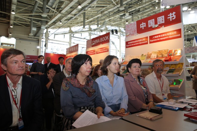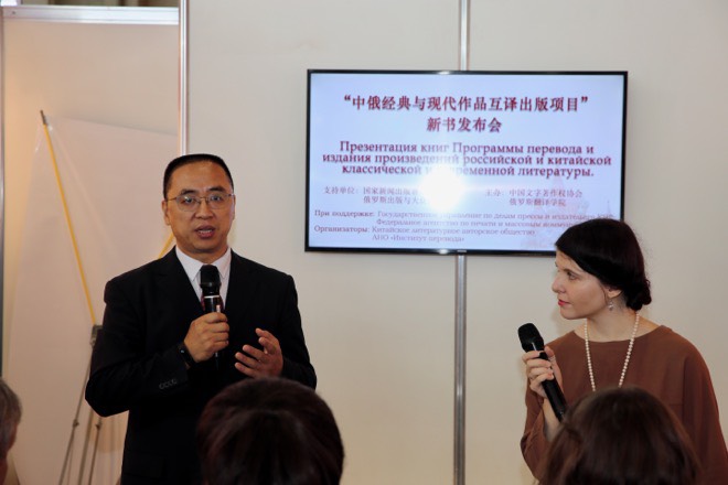 俄羅斯翻譯學(xué)院院長(zhǎng)列茲尼琴科,中國駐俄羅斯大使館二秘王睿以及來自俄羅斯出版與大眾傳媒署、俄羅斯科學(xué)院、莫斯科大學(xué)、俄羅斯外國文學(xué)圖書館、歐亞著作權(quán)人組織聯(lián)合會(huì)、俄羅斯兒童基金會(huì)、俄羅斯兒童文學(xué)出版社、俄羅斯東方文學(xué)出版社、俄羅斯維切出版社、俄羅斯時(shí)代出版社、白俄羅斯人民文學(xué)出版社、白俄羅斯大百科全書出版社的官員、作家、漢學(xué)家和出版人代表、中國新聞出版代表團(tuán)全體成員以及兩國媒體記者近百人參加了新書發(fā)布會(huì)。