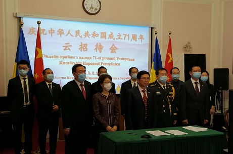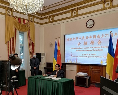 中國駐烏克蘭大使范先榮以視頻連線方式,邀請烏政要和友人齊聚云端,共同慶祝中華人民共和國成立71周年。