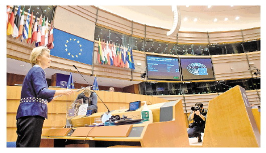 “2021年將是科技巨頭的監(jiān)管年。它們現(xiàn)在已經(jīng)是一個成熟的行業(yè)了,而不再只是閃閃發(fā)光的年輕創(chuàng)業(yè)公司?!泵绹鴳?zhàn)略與國際問題研究中心高級副總裁、技術(shù)政策項目主任詹姆斯·安德魯·劉易斯評論說:“我們過去常說,銀行‘大而不能倒’,但銀行其實受到高度監(jiān)管。現(xiàn)在,對這些科技巨頭的監(jiān)管也應(yīng)朝著這個方向發(fā)展?!?br/> 歐盟今年2月啟動《數(shù)字服務(wù)法案》和《數(shù)字市場法案》立法工作。歐盟領(lǐng)導(dǎo)人就此進(jìn)行了數(shù)輪磋商。12月15日,歐盟委員會公布了《數(shù)字服務(wù)法案》及《數(shù)字市場法案》草案。圖①為歐盟委員會領(lǐng)導(dǎo)人及法、德等歐洲主要國家領(lǐng)導(dǎo)人在布魯塞爾進(jìn)行磋商。圖②為歐盟委員會主席馮德萊恩。
