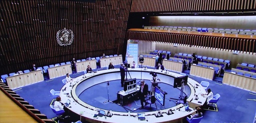 第74屆世界衛(wèi)生大會(huì)24日開(kāi)幕。這是位于瑞士日內(nèi)瓦的世界衛(wèi)生組織總部會(huì)議現(xiàn)場(chǎng)(翻拍視頻畫面)。新華社記者 鄭煥松 攝