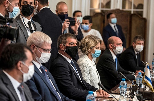 5月30日,以色列外交部長阿什克納齊(前排左三)在埃及開羅與埃及外交部長舒凱里(不在畫面中)舉行會(huì)談。新華社/法新