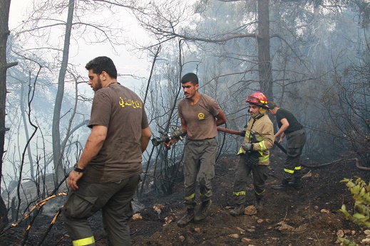 7月29日,黎巴嫩民防人員在阿卡爾省火災(zāi)現(xiàn)場(chǎng)滅火。