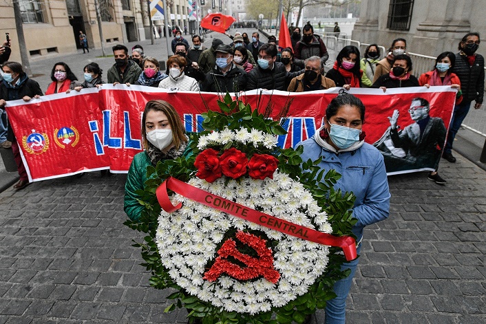 9月11日,智利共產(chǎn)黨在首都圣地亞哥舉行活動悼念48年前在軍事政變中遇難的前總統(tǒng)阿連德。
