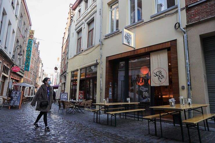 10月27日,行人經(jīng)過比利時布魯塞爾市中心的一家餐館。
