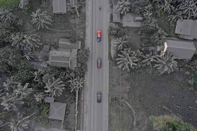 6月5日,菲律賓索索貢省的一個城鎮(zhèn)被布盧桑火山噴發(fā)的火山灰覆蓋(無人機(jī)照片)。