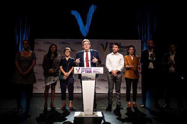 6月19日,法國極左翼政黨“不屈法國”領(lǐng)導(dǎo)人梅朗雄在巴黎舉行的選后集會上講話。