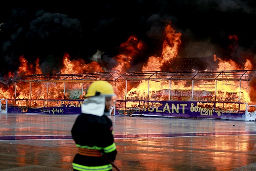 這是6月26日在緬甸仰光拍攝的毒品銷毀現(xiàn)場(chǎng)。