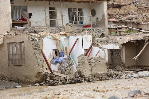 這是8月15日在阿富汗東部帕爾萬省拍攝的被洪水損毀的房屋。