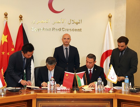 《中華人民共和國政府與巴勒斯坦國政府向巴勒斯坦加沙地帶提供緊急人道主義物資援助交接證書》簽字儀式12月3日在埃及首都開羅舉行。中國駐埃及大使廖力強、巴勒斯坦駐埃及大使迪亞布、埃及紅新月會總干事拉米等出席。