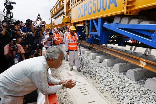 由中國交通建設(shè)集團(tuán)有限公司承建的馬來西亞東海岸鐵路(馬東鐵)項目軌道工程啟動儀式12月11日在馬來西亞彭亨州首府關(guān)丹市舉行。馬來西亞最高元首阿卜杜拉在儀式上正式啟動馬東鐵項目軌道鋪設(shè)。