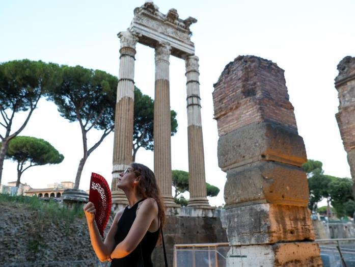7月5日傍晚,在意大利羅馬,游客在古羅馬廣場參觀。