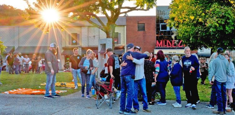 圖為當(dāng)?shù)貢r(shí)間10月12日,美國(guó)田納西州韋弗利,民眾聚集在漢弗萊斯縣法院,為炸藥廠爆炸事件的遇難者舉行燭光守夜活動(dòng)。 CFP供圖