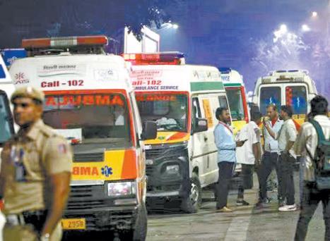 圖為11月10日,在印度新德里,救護車抵達汽車爆炸事發(fā)地點。 新華社發(fā)