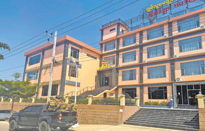 圖為當(dāng)?shù)貢r間2025年2月14日,緬甸東部妙瓦底鎮(zhèn),克倫邊防部隊(duì)(BGF)成員在水溝谷巡邏,打擊與詐騙中心相關(guān)的非法活動。 CFP供圖