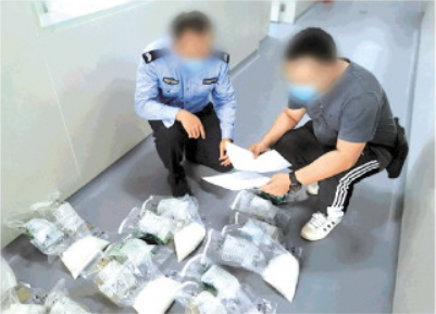 圖為鄧實(shí)(右)與同事在清點(diǎn)收繳毒品。