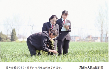 正是秉持著這樣的信念,金莉莎奔波在田間地頭,依法用心用情守護著公平正義。她吃苦耐勞、善于鉆研,多次被鄧州市法院評為“優(yōu)秀法官”“辦案能手”,2024年2月被河南省高級人民法院授予“李慶軍式十佳法官”榮譽稱號。