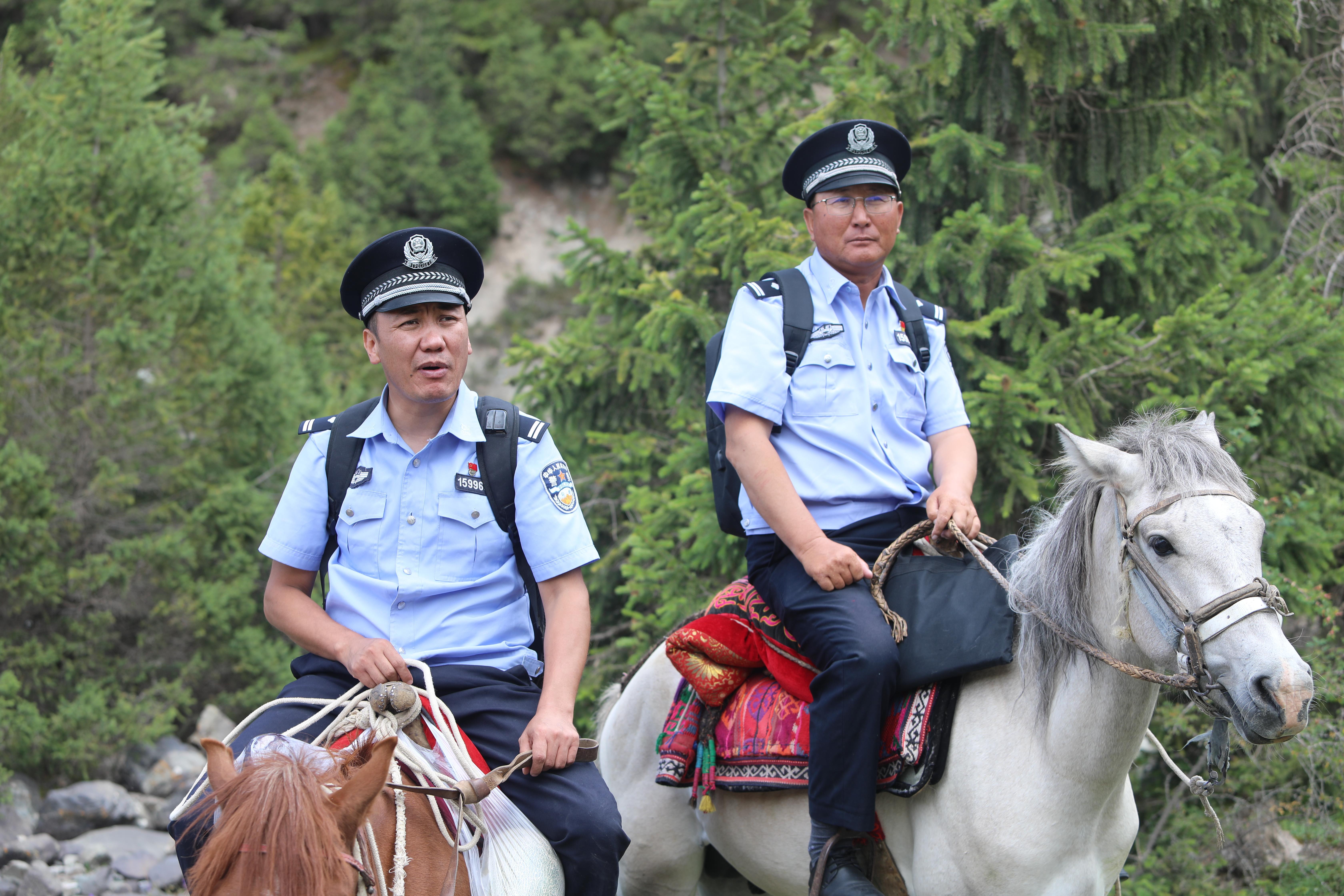 這是烏恰縣公安局波斯坦鐵列克鄉(xiāng)派出所的“馬背警務(wù)服務(wù)隊(duì)”,民警李鑫林和同事加庫普瓦力·拜克堯力正帶著辦好的證件,送往牧民家中。喬爾波村牧區(qū)面積大,部分區(qū)域車輛難以抵達(dá),馬匹成了最可靠的交通工具。