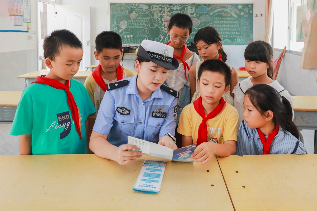 圖為9月2日,民警在章貢區(qū)水西鎮(zhèn)石甫小學向同學們講解交通安全知識。