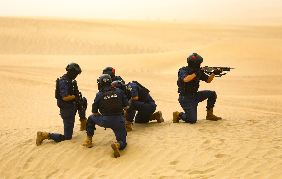 9月5日,新疆維吾爾自治區(qū)葉城縣公安局特警大隊(duì)在沙漠戈壁開(kāi)展秋季實(shí)戰(zhàn)化訓(xùn)練,進(jìn)行沙漠定向越野、極限耐力行軍、沙漠搜捕、武器精準(zhǔn)射擊等科目,應(yīng)對(duì)風(fēng)沙、高溫、逆光等復(fù)雜環(huán)境考驗(yàn),所有訓(xùn)練科目高效完成,不僅錘煉了特警隊(duì)員的體能與專(zhuān)業(yè)技能,更凝聚協(xié)作力量,為守護(hù)邊疆穩(wěn)定筑牢了根基。