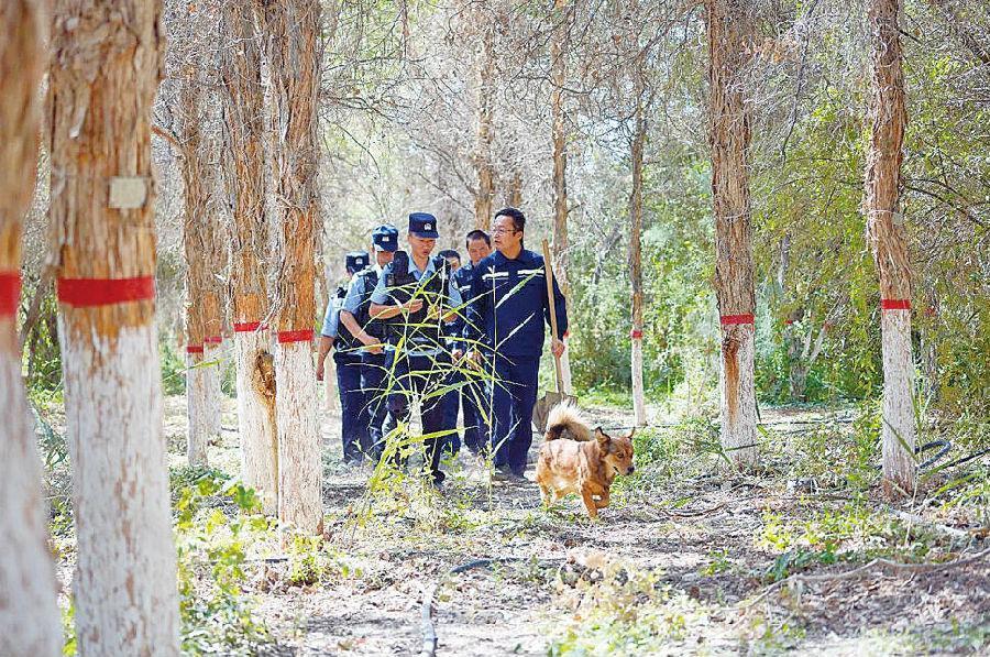 圖為近日,新疆兵團(tuán)第二師烏魯克墾區(qū)公安局羅楊派出所民輔警與團(tuán)場(chǎng)職工在防護(hù)林里巡邏。