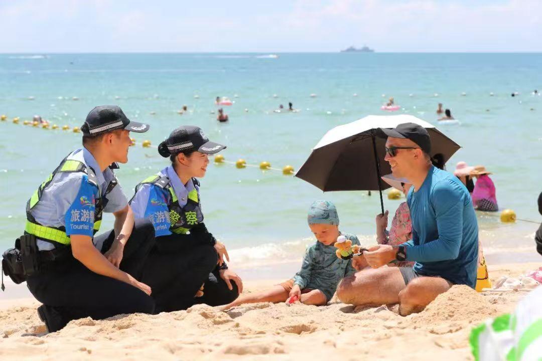 “我們非常喜歡三亞,這里非常舒適、安全,我去了很多地方,服務(wù)都很好”。10月4日上午,大東海景區(qū),碧海藍天、椰林沙灘,美不勝收,俄羅斯籍游客正帶著孩子在大東海沙灘上玩耍,當旅游警察陳玨用俄語向其宣傳旅游安全知識時,這位外籍游客高興地說道。