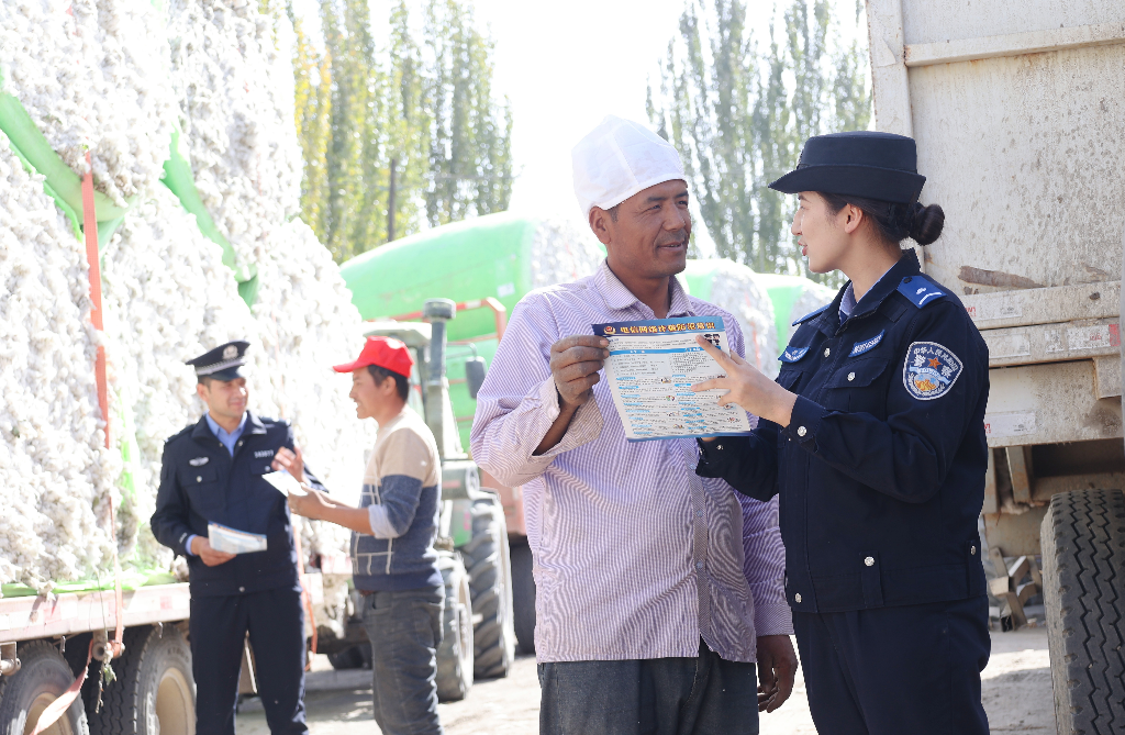 金秋時(shí)節(jié),萬畝棉田銀絮滿枝,豐收的喜悅在田間流淌。為全力守護(hù)棉農(nóng)勞動(dòng)成果,全時(shí)段護(hù)航豐收季平安,連日來,新疆維吾爾自治區(qū)阿瓦提縣公安局多措并舉,做實(shí)“流動(dòng)警務(wù)+多點(diǎn)防控+源頭發(fā)力”工作模式,警務(wù)力量主動(dòng)下沉至田間地頭、企業(yè)廠區(qū),將平安送到群眾身邊,以藏藍(lán)底色為豐收季撐起“安全傘”。