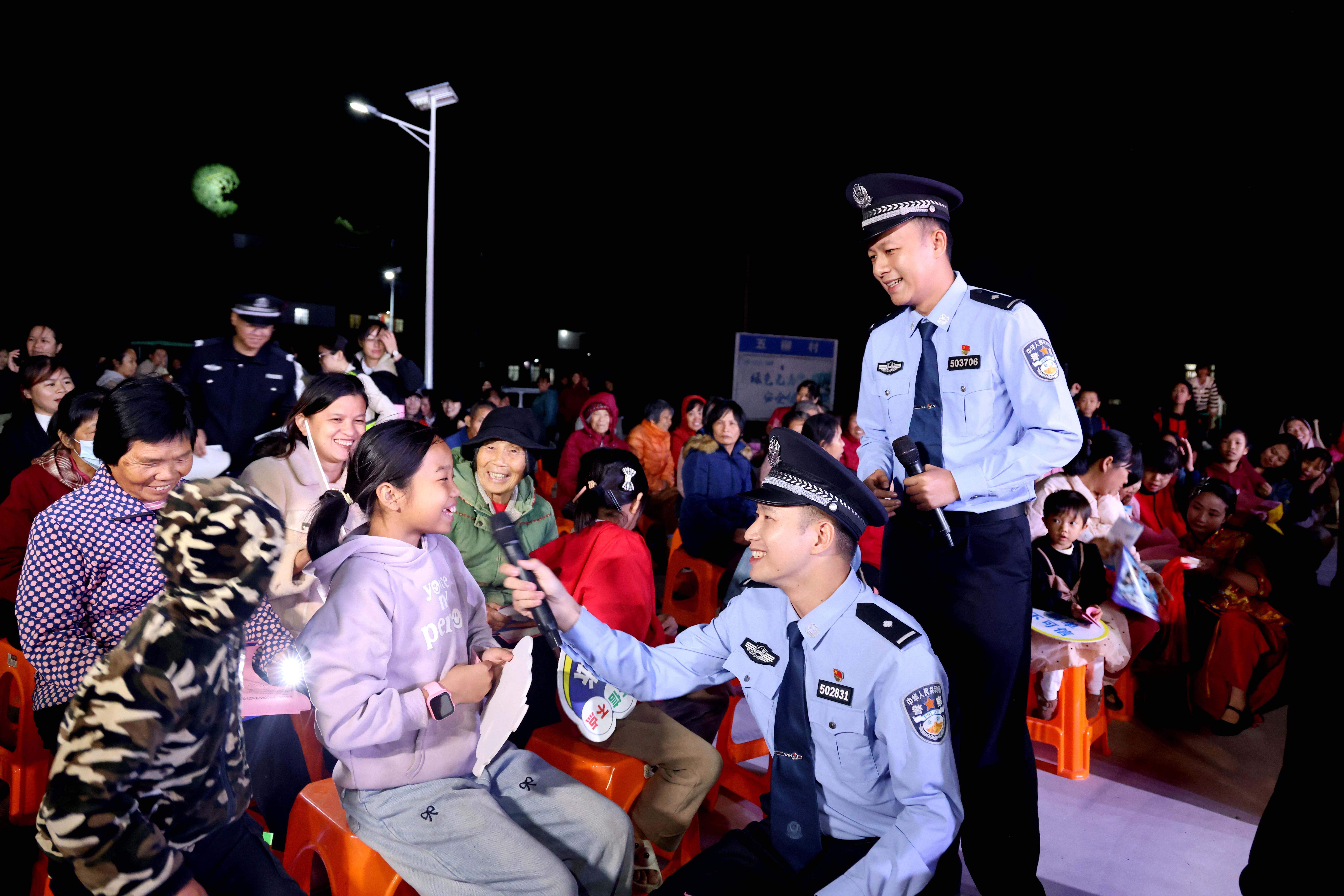 晚會(huì)期間,民警將禁毒反詐知識(shí)融入流行歌曲改編,并設(shè)置互動(dòng)問(wèn)答環(huán)節(jié)。針對(duì)未能進(jìn)入主會(huì)場(chǎng)的觀眾,民警延伸宣傳觸角,場(chǎng)外同步發(fā)放、講解宣傳資料?!斑@樣的宣傳我們記得住!既看了節(jié)目,又學(xué)了知識(shí)。”村民李大爺說(shuō)。