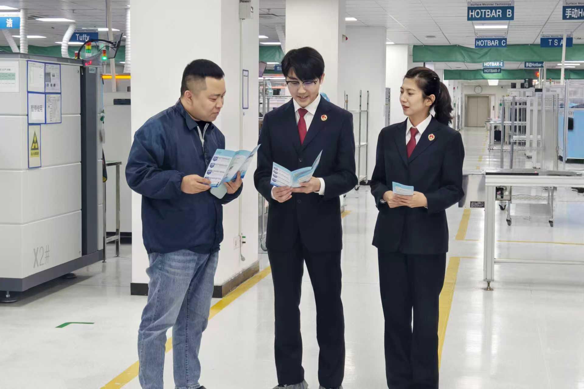 近日,江蘇省南京市江寧經(jīng)濟技術(shù)開發(fā)區(qū)人民檢察院園區(qū)檢察官走進外資企業(yè)開展“送法上門”活動,向企業(yè)員工介紹園區(qū)檢察官工作并推廣“江開檢企通”微信小程序。