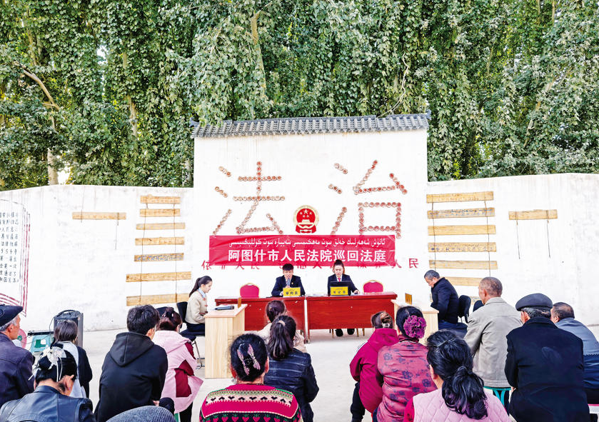 圖為阿圖什市人民法院巡回法庭在上阿圖什鎮(zhèn)塔庫(kù)提村開(kāi)庭。張蕾 攝