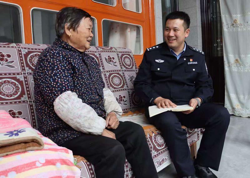 圖為民警與獨居老人聊家常并解決實際困難。