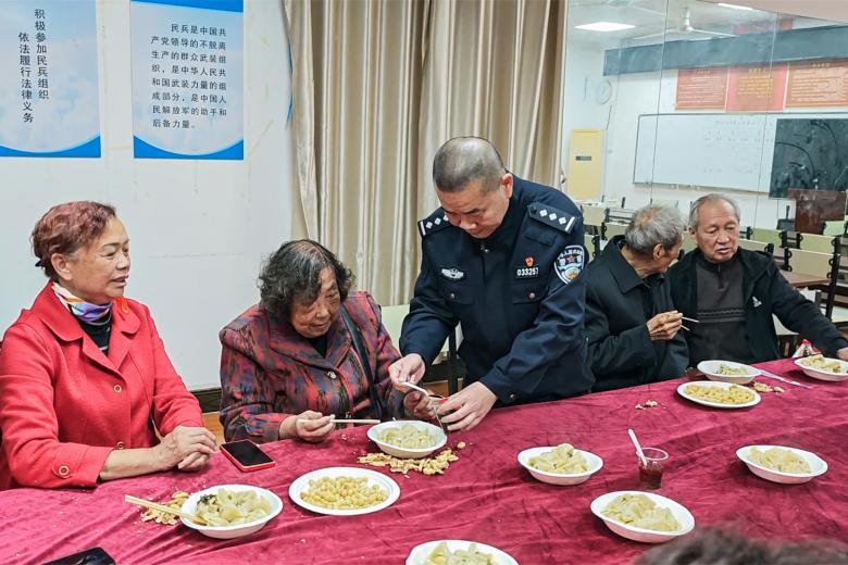 圖為邵奇(中)在重陽節(jié)前夕為轄區(qū)獨居老人辦餃子宴。