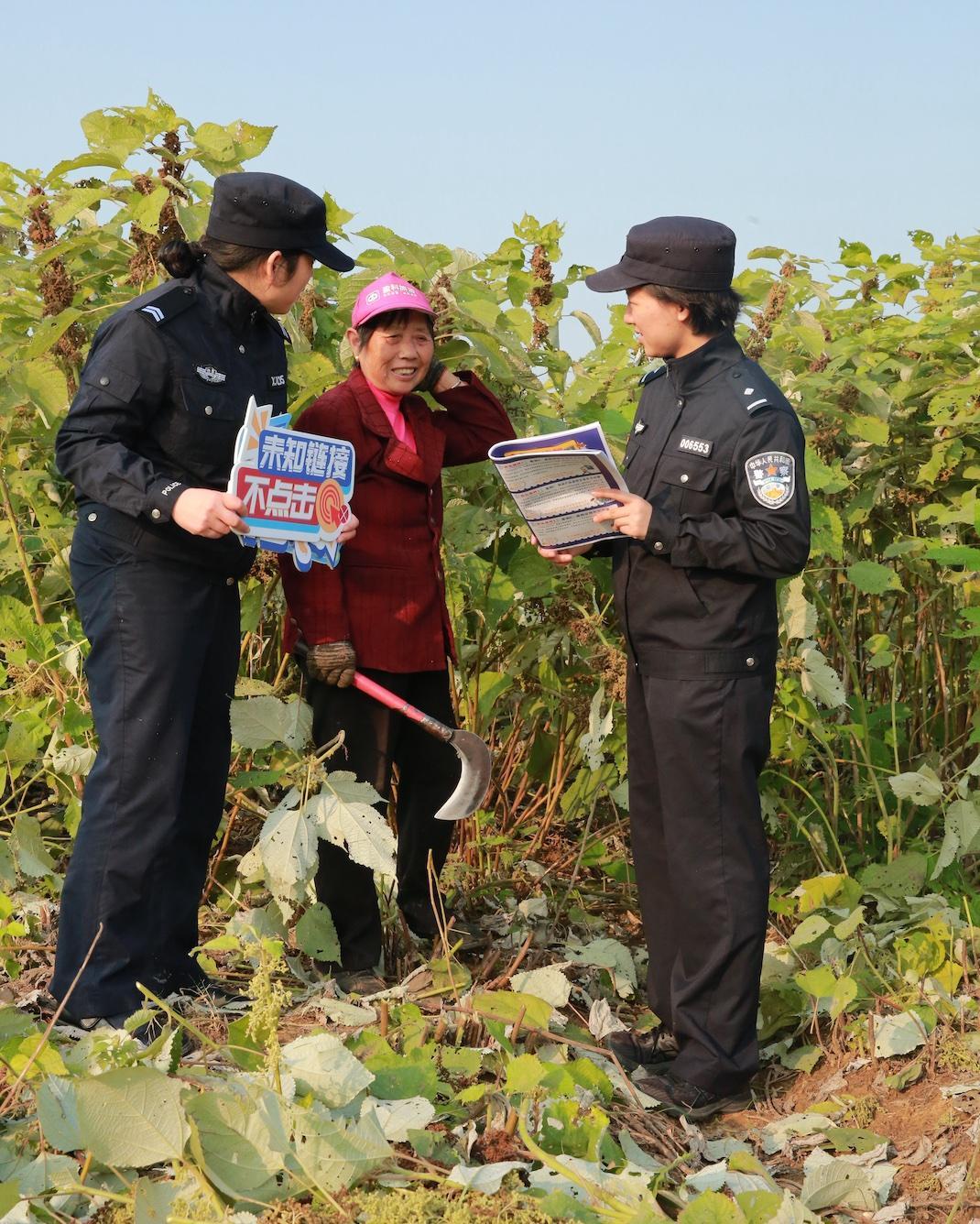 11月18日,湖北省黃石市公安局開發(fā)區(qū)·鐵山區(qū)分局太子派出所民警走進太子鎮(zhèn)朋畈村,以“拉家常”的方式摸排矛盾糾紛,并向在苧麻地勞作的村民精準宣傳反詐知識。