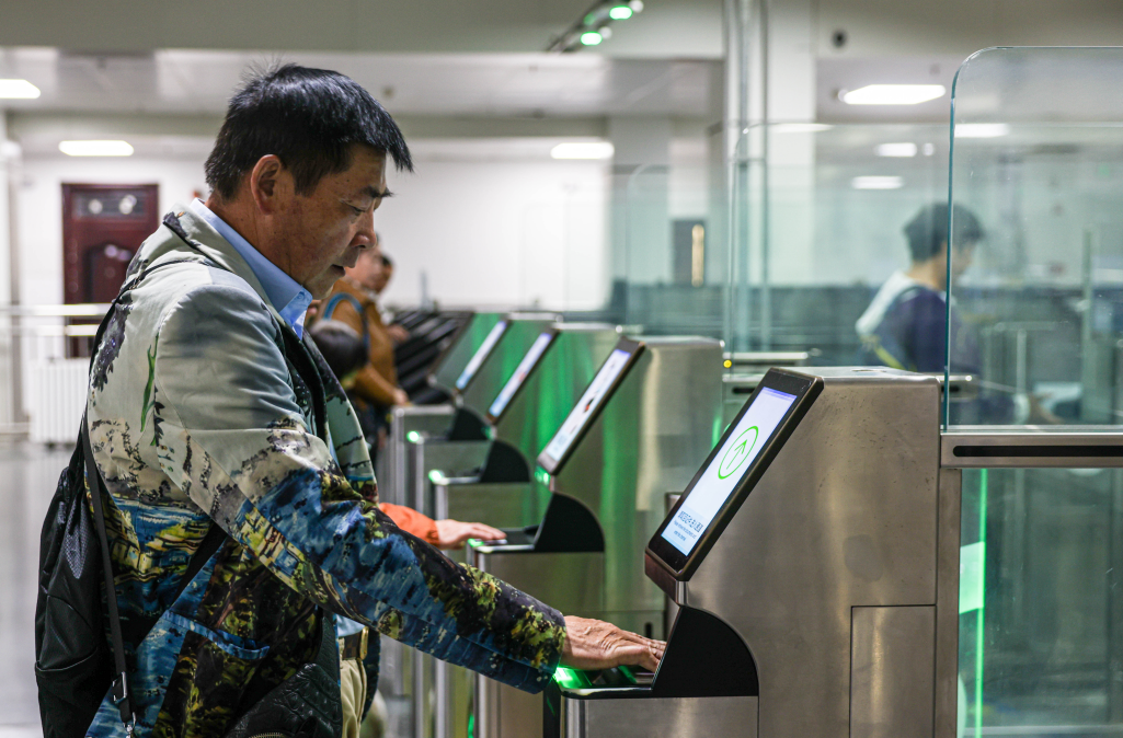 圖為11月18日,游客正在通過智能快捷通道進入中哈霍爾果斯國際邊境合作中心。曹榮 攝