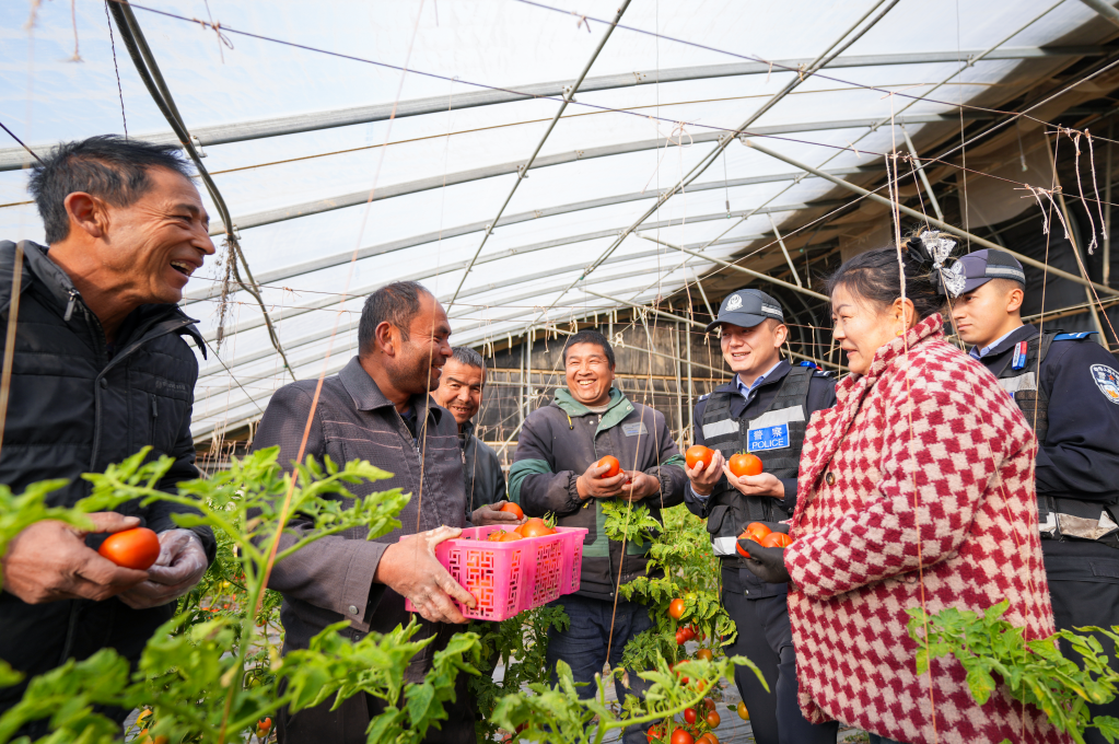 圖為民警與種植戶親切交流,了解其生產(chǎn)經(jīng)營中的困難與需求,提供貼心服務(wù)。