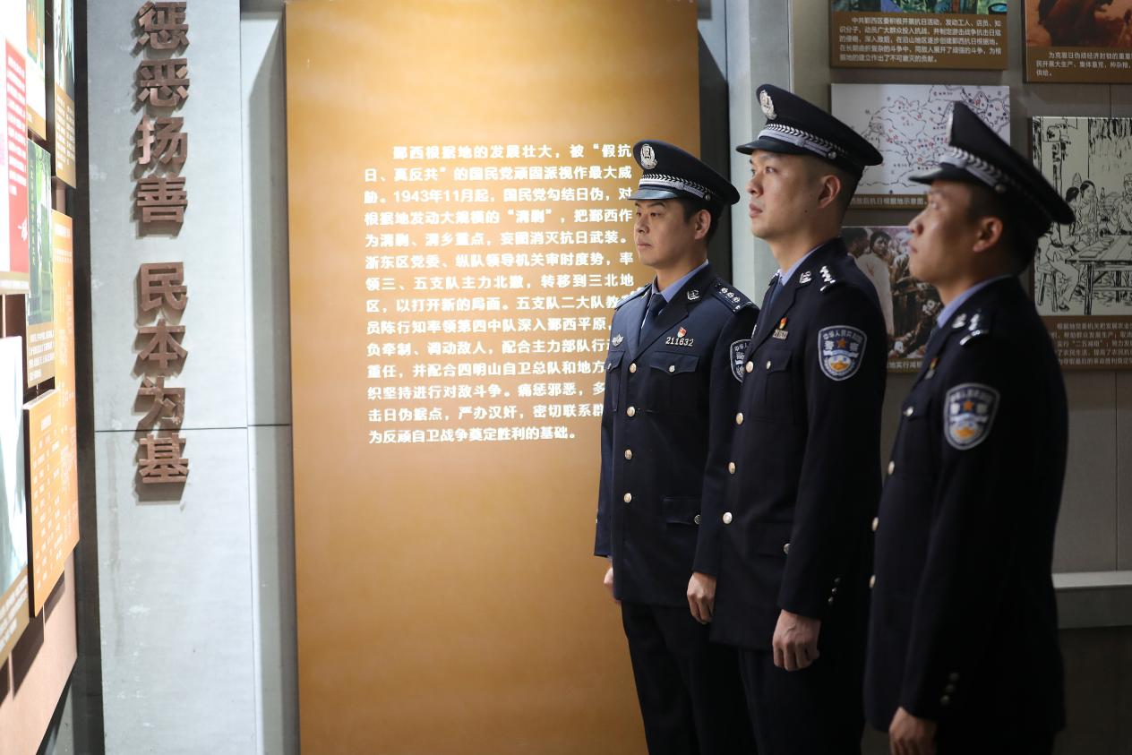 在莊嚴的革命烈士紀念碑前,全體移民管理警察整齊列隊、靜默肅立,通過集體默哀、鞠躬致敬、敬獻鮮花等方式,深切緬懷抗日戰(zhàn)爭中為民族解放英勇獻身的革命先烈。隨后,大家走進寧波市后屠橋村革命史跡陳列館,在一幅幅珍貴圖片、一件件歷史實物、一幕幕復(fù)原場景前駐足觀看,重溫那段艱苦卓絕的斗爭歷程,深刻感悟革命先烈不畏強敵、舍生忘死的英雄氣概和崇高精神。