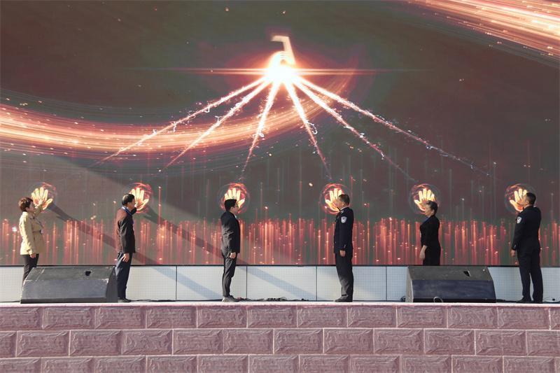 隨后,啟動(dòng)儀式將現(xiàn)場(chǎng)推向高潮。監(jiān)獄長(zhǎng)楊天良與民盟廈門市委專職副主委林濤、副監(jiān)獄長(zhǎng)唐榕輝、法治日?qǐng)?bào)廈門記者站站長(zhǎng)張淑秋、文史專家顏立水、道德模范吳招治共同按下“啟動(dòng)手印”。剎那間,光影流轉(zhuǎn),大屏上一只金色鳳凰浴火騰空,羽翼舒展,化為“鳳凰花開(kāi)”品牌標(biāo)識(shí)。這簇由火焰中生出的花朵,恰如高墻內(nèi)靜待重生的靈魂,在淬煉中孕育綻放的可能。