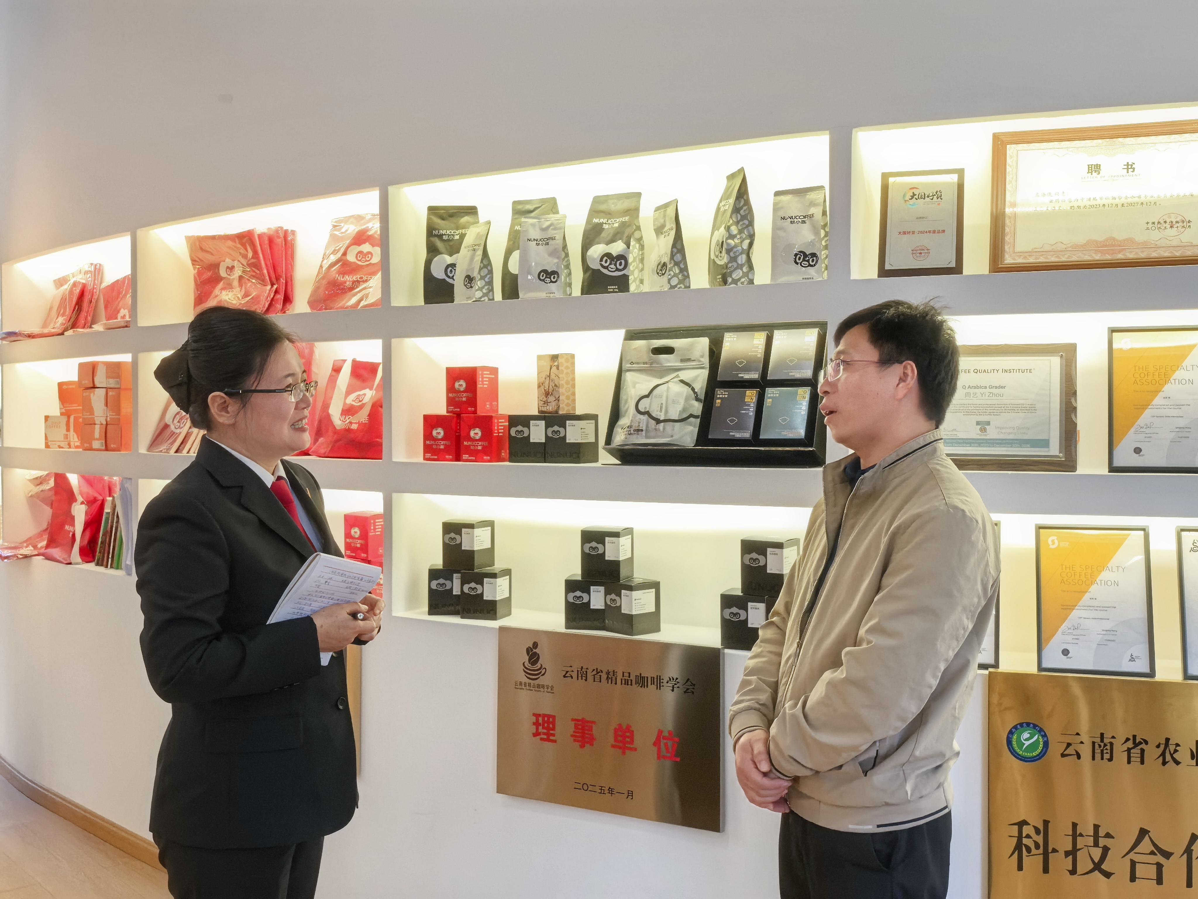 圖為法官深入咖啡企業(yè)精準(zhǔn)對(duì)接司法需求 趙曉云 攝