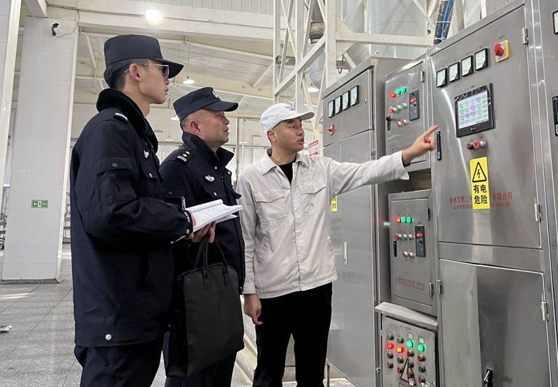 日頭斜過鋅鋼板廠房的尖頂,甘肅省張掖市民樂縣工業(yè)園區(qū)裹著細(xì)沙的風(fēng),簌簌擦過水泥路面。這片沿戈壁鋪開的園區(qū)里,廠房新舊交錯,部分墻皮已被風(fēng)蝕得泛白。兩名民警一前一后穿行其間,一人壓了壓帽檐留意周邊環(huán)境,一人手持臺賬仔細(xì)核對著門牌,朝著下一間廠區(qū)走去。