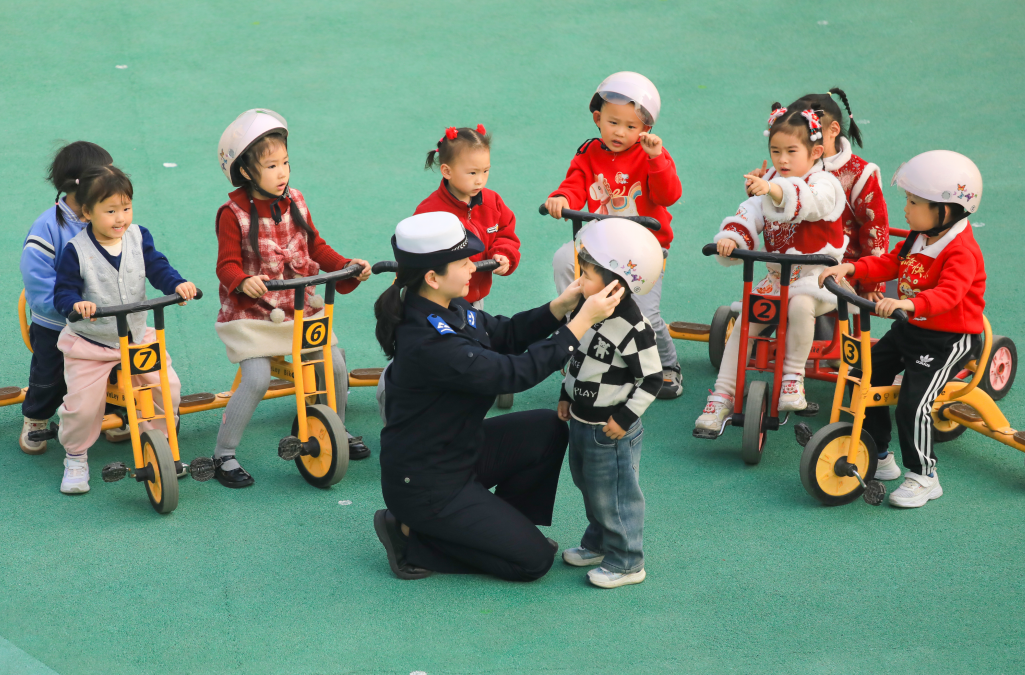 圖為1月19日,民警走進章貢區(qū)第二十二保育院,在寓教于樂中為孩子們普及交通安全知識。