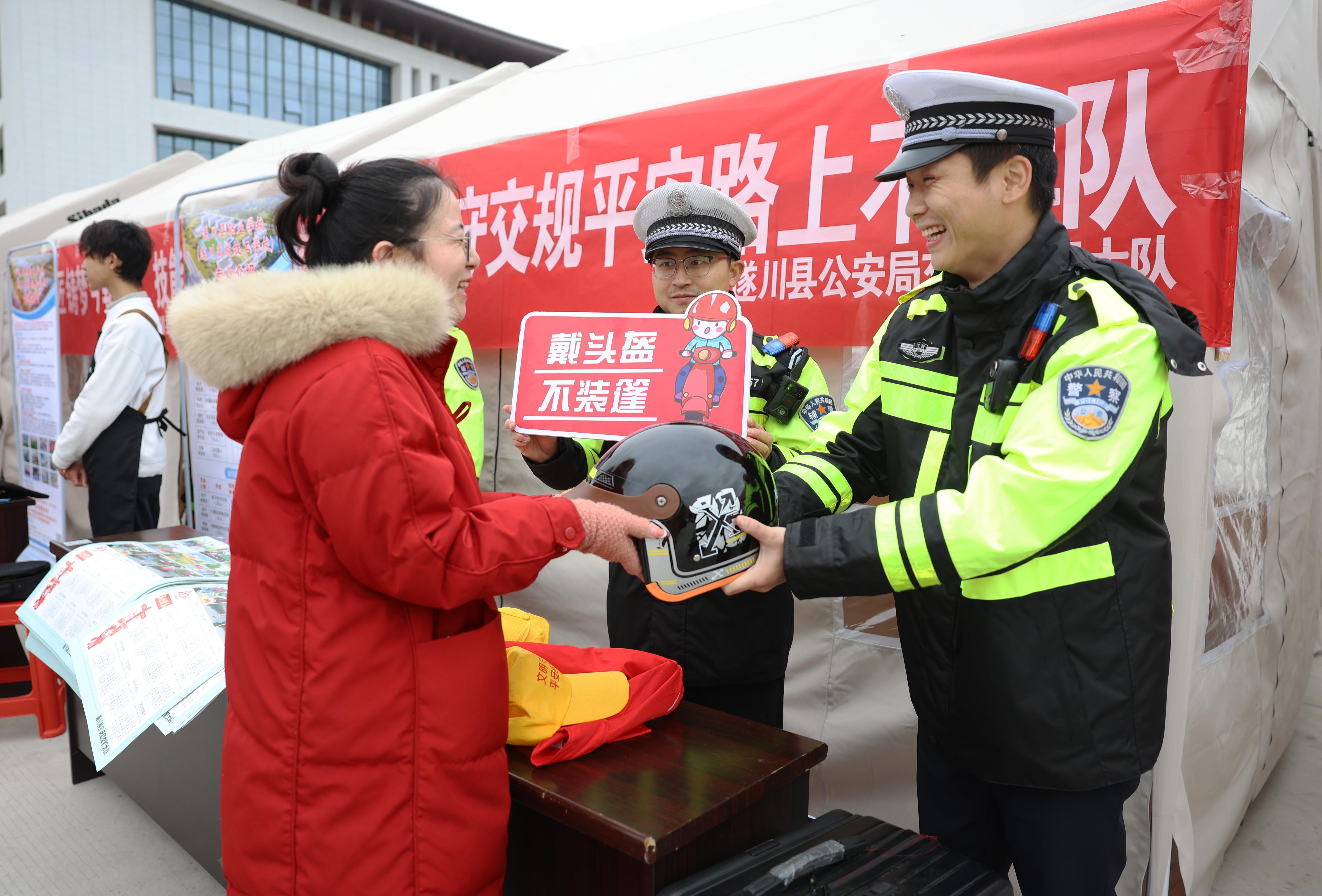 2026年春運(yùn)首日,江西省遂川縣公安局交管大隊聯(lián)合多部門在縣文化產(chǎn)業(yè)中心廣場舉辦“我們的節(jié)日·春運(yùn)”平安交通賀新春活動,民輔警與志愿者通過方言順口溜、拍手歌等形式,向群眾宣講道路交通安全法律知識,并設(shè)置知識搶答環(huán)節(jié),為參與群眾贈送安全頭盔。