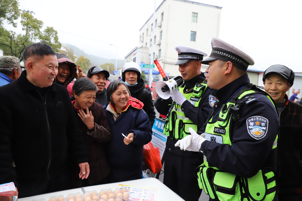 圖為2月11日,民警來到渝水區(qū)人和鎮(zhèn)集貿(mào)市場為群眾宣講交通安全知識。
