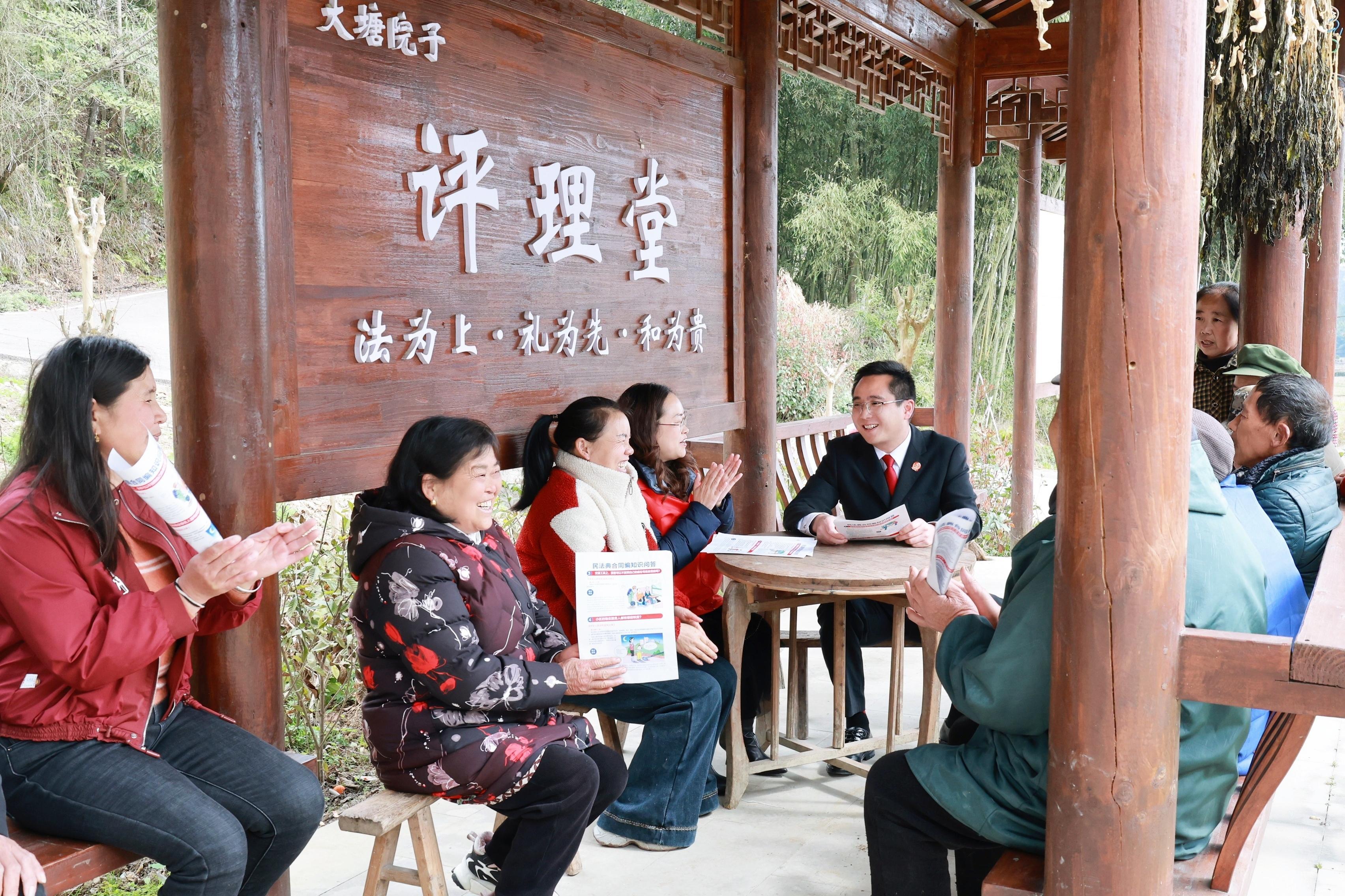 圖為法官與群眾面對面互動(dòng)交流,主動(dòng)接受村民法律咨詢。